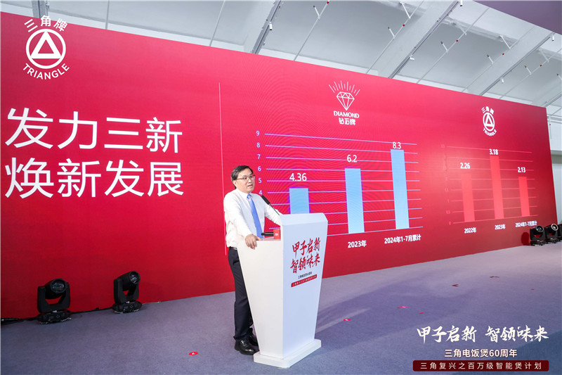 2024年8月28日,广东三角牌电器股份有限公司于广州T.I.T智慧园隆重举办三角牌电饭煲60周年之‘百万级智能煲新品’发布会。发布会现场各界专家媒体嘉宾云集,来自全国各地的工厂、商家客户齐聚一堂,共商三角未来复兴大计。